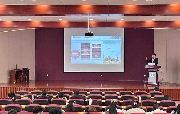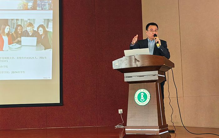 核心优势、项目具体详情、录取核心要求、海外生活保障及就业发展前景等方面,进行了系统全面的讲解。他重点介绍了4+2、3+1、3+1+1等多元化合作培养模式,详细解读了APS团审、签证办理流程、语言能力要求等学生最为关心的关键信息,同时分享了德国较低的生活成本、完善的境外服务体系以及广阔的就业与升学前景等留学优势,让在场学生对项目有了清晰直观的认知。